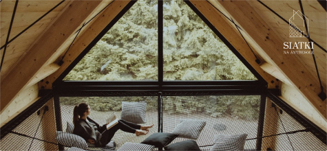 Hamaki siatkowe, strefy relaksu nad wodą, zabezpieczenia tarasów i pomostów. Siatki odporne na warunki atmosferyczne i UV, dostępne w kolorach pasujących do aranżacji zewnętrznych.​