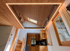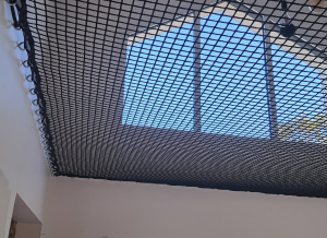 Siatki montowane w otworze stropowym lub nad przestrzenią mieszkalną. Bezpieczne, doświetlające, efektowne — i zawsze wykonane na wymiar pod konkretny kształt i mocowania.