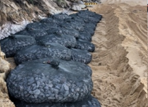 Dedykowana siatka Net4Stone wypełniona kamieniami o nośności 2 000–4 000 kg. Zabezpiecza wyrwy w groblach, fundamenty mostów, nabrzeża, wydmy i fundamenty farm wiatrowych.